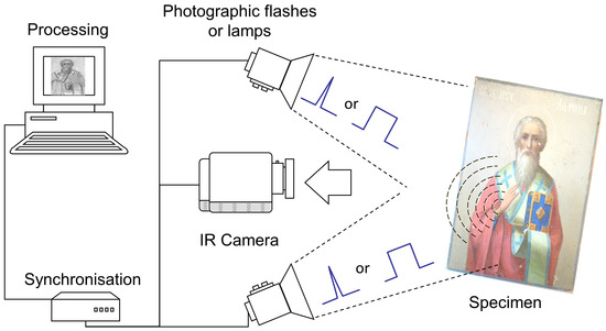 - Gavrilov, D.; Maev, R.; Almond, D.P. A review of imaging methods in analysis of works of art: Thermographic imaging method in art analysis. Can. J. Phys. 2014, 92, 341–364. [Google Scholar] [CrossRef]