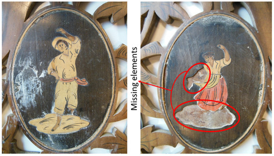Falco used a high-resolution IR-A camera to capture photographs (“reflectograms”) of hundreds of paintings in over a dozen museums on three continents. In some cases, these IR-A reflectograms have provided new insights into the artists’ creative process while creating the final images that are possible to see in the visible [7]. Sfarra et al. studied an integrated approach based on traditional and innovative techniques (i.e., holographic interferometry, pulsed thermography (IR-C) and near-infrared reflectography (IR-A)) applied on poplar wood with a complex surface shape containing artificial defects positioned at several depths and linked to the influence of the support on the upper layers up to the external coating [8]. In [9], the authors applied high resolution IR-A reflectography and IR-C’ imaging to characterize the superficial layer of a fresco and to analyse the stratigraphy of different pictorial layers. IR-C” thermography in the 7–14 band was also used to understand the nature of the support. Sandu et al. provided a review centred on the characterization via NDT and micro-DT of artistic gilded objects for establishing the compositional, structural, morphological and physical-chemical parameters useful for monitoring the conservation state, behaviour and evolution in time of their aging/degradation/deterioration processes, the restoration treatments influencing the conservation state of the original materials and also for a rational choice of methods and materials of intervention, compatible with the original ones [10]. In 2012, a new imaging tool in art conservation called thermal quasi-reflectography (TQR) [11] was proposed and demonstrated. It is based on the recording by suitable procedures, of reflected infrared radiation in the mid-wave infrared band (IR-C’); it was applied to the analysis of painting surfaces. Paintings on canvas were also studied in [12] thanks to different physical techniques; in particular, the stretcher effect and subsurface anomalies were analysed and detected with the aim to improve the conservator’s knowledge concerning the defect’s detection and defect’s propagation in acrylic paintings characterized by underdrawings and pentimenti.