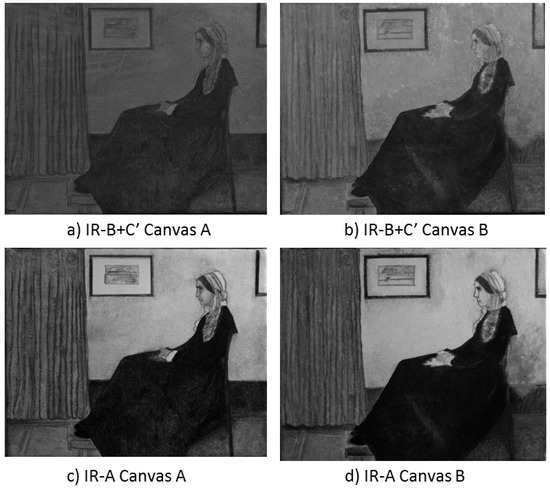 IR-B+C’ and IR-A reflection results of the Whistler paintings using halogen illumination from the frontside.