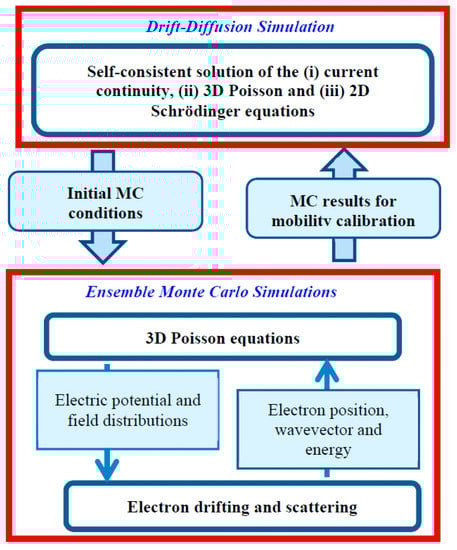 - Aldegunde, M.; García-Loureiro, A.J.; Kalna, K. 3D finite element monte carlo simulations of multigate nanoscale transistors. IEEE Trans. Electron Devices 2013, 60, 1561–1567. [Google Scholar] [CrossRef]