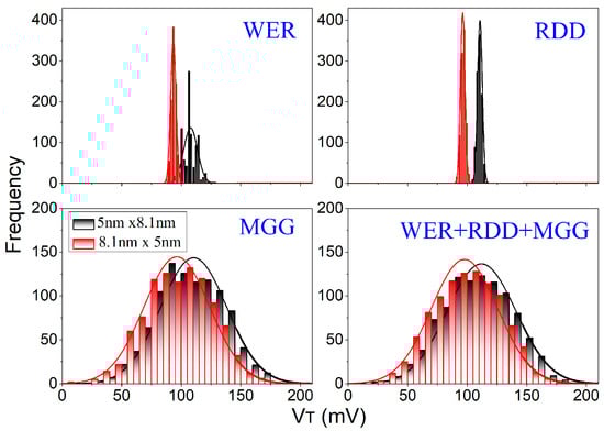 - Asenov, A.; Brown, A.R.; Davies, J.H.; Kaya, S.; Slavcheva, G. Simulation of intrinsic parameter fluctuations in decananometer and nanometer-scale MOSFETs. IEEE Trans. Electron Devices 2003, 50, 1837–1852. [Google Scholar] [CrossRef]