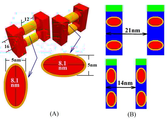 - Moroz, V.; Huang, J.; Choi, M. FinFET/nanowire design for 5 nm/3 nm technology nodes: Channel cladding and introducing a ‘bottleneck’ shape to remove performance bottleneck. In Proceedings of the 2017 IEEE Electron Devices Technology and Manufacturing Conference (EDTM), Toyama, Japan, 28 February–2 March 2017; Volume 3, pp. 67–69. [Google Scholar]