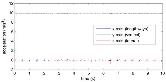 The acceleration curves of the robot when moving are shown in Figure 21. In the vertical direction (y-axis), the acceleration is stable at around 9.8 m/s2 (gravitational acceleration), which shows the predesigned WT reduce the mechanical shock well. In the lengthways direction (x-axis), the fluctuation of the acceleration is bigger in trot but smaller in walk due to the walk gait being more stable than trot. In the lateral direction (z-axis), except for the gaits transition period, the acceleration range is very small.