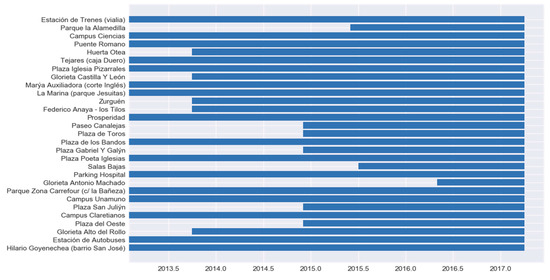 The SalenBici System is a bike sharing system located in Salamanca, a medium city with a population of 144.949 according the last 2016 census [11]. Today, this system has 29 stations and 176 bikes throughout the city. The system working hours are: work days from 7:00–22:00 and weekends and holidays from 10:00 to 22:00. Figure 4b shows the station map of SalenBici BSS.
