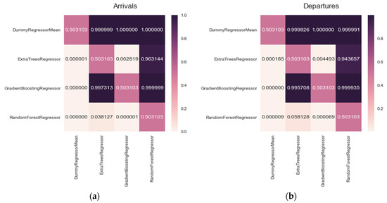 Mann-Whitney U test two sided for (a) arrivals and (b) departures.