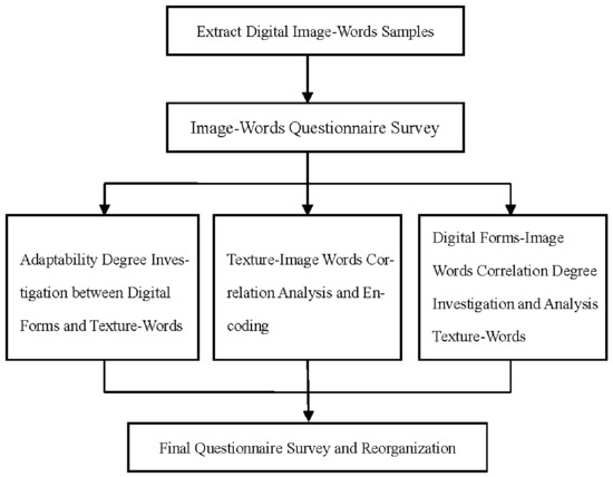 When a consumer chooses digitals, their degree of emotion regarding overall digital factors is sometimes clear and sometimes fuzzy, as it is a complicated mutual fuzzy attribute process. We clarified the fuzzy attribute process using a semantic difference method (SD) questionnaire to obtain images of the surveyed digital forms and texture words [12,13,14]. SD could avoid the interference of other factors in the two factors and investigate simply by texture and image words or form and image-words [15,16,17]. Meanwhile, we also considered the correlation between texture, form, and image words [18,19,20]. The results were encoded and obtained from continuous mutual comparisons of texture. In the computation of questionnaires, we used the marks from those that were surveyed to conduct correlation analysis to examine the correlation between words and texture, matching between words, forms, and coupling degree between texture words and form [21,22].