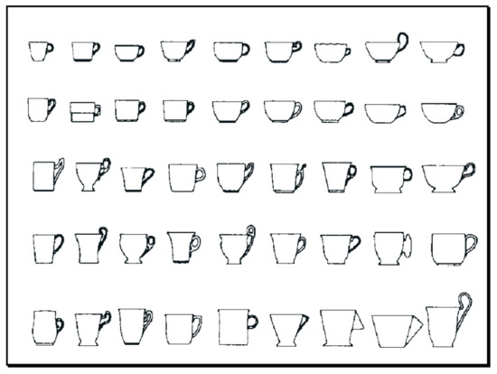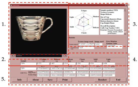 In this stage of technological development, we selected a set of coffee cups to set potential digital developments and explored the correlation degree between the form, texture, and digital image of coffee cups [23]. Users’ demands and their impression of the cups are significantly affected by related affective factors such as color, function, and usability, which are not considered in other research, thus we obtained simple variable factors by only analyzing the form and texture that might affect consumers’ digital image feeling [24].