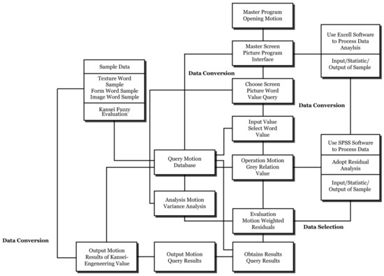 Use fuzzy assessment methods to build a sample database; the building pattern was constructed using the SQL database. In consideration of the mutual effects between two variables of texture word and form, we used variance analysis and grey relational analysis in GST to analyze the weight ratio of the effects of texture word value and form on digital images. Use a computer program to design a set of consultable programs and software that could input and output digital words in order to help develop, plan, and design personnel to effectively grasp the digital scale of consumer’s psychological demands and help the digital market positioning. Eventually, the above-mentioned functions of the above-mentioned parts will be integrated into a series of grey consultation systems [29].