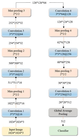 VGG16 is proposed and trained by the Oxford’s Visual Geometry Group (VGG) [] for object recognition. The model scored first in ILSVRC image localization and second in image classification tasks. We customized the architecture of VGG16 model and evaluated its performance toward the tasks of interest. The model is truncated at the deepest convolutional layer and added with a global average pooling (GAP) and dense layer as shown in Figure 6. We refer to this model as customized VGG16 in this study.
