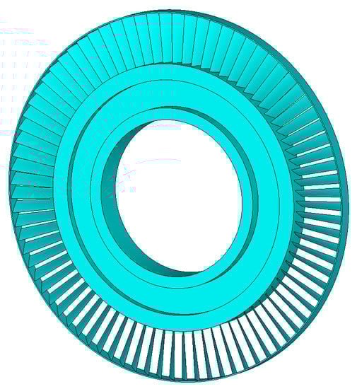 Bladed disks (Figure 1) in gas turbine engines are interested by severe vibration problems, mainly caused by the non-stationary gas flow pressure [], which can result in high cycle fatigue damage and failure. If resonances cannot be avoided, as in many practical cases due to the high modal density of bladed disks in certain frequency ranges, a forced response analysis is necessary to accurately assess the vibration levels [].