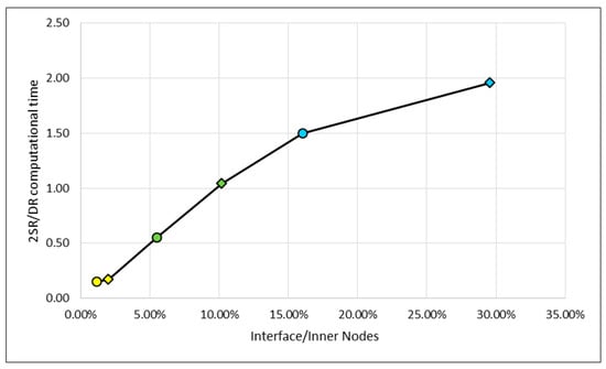 Based on the results in Table 5 and on the remarks in Section 3.3, it is observed here that a suitable parameter to rank the Test Cases in terms of numerical efficiency is the ratio . (interface/inner nodes), since: