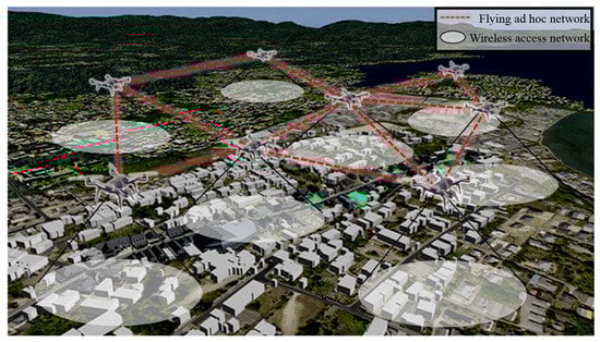 - Lee, J.; Kim, K.; Yoo, S.; Chung, A.Y.; Lee, J.Y.; Park, S.J.; Kim, H. Constructing a reliable and fast recoverable network for drones. In Proceedings of the 2016 IEEE International Conference on Communications (ICC), Kuala Lumpur, Malaysia, 22–27 May 2016; pp. 1–6. [Google Scholar]