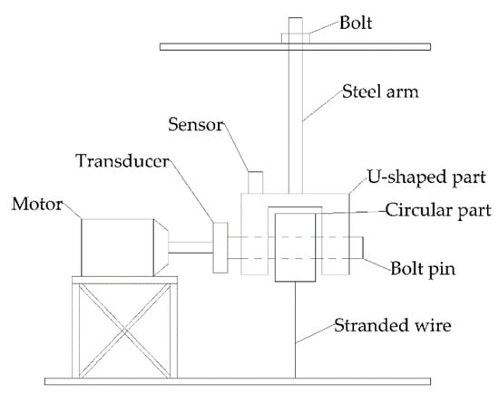 Pin connections, as one of the most common forms for rotational connections, have many advantages, such as low cost and ease of assembly. Compared with other connection forms, pin connections allow for relative rotation of the structural component to different degrees []. This paper studied pin connections with working conditions at low rotational speed, and these low rotational speed pin connections have been widely used in suspension bridges and wind turbines among others. As a matter of fact, most pin connections involve low rotational speeds, since, for a high rotational speed, often more sophisticated bearings will be used to reduce the friction. However, continuous operation without proper lubrication may cause serious wear on the surface of the pins, and this may result in the eventual failure if not detected in time. The traditional method of detecting abnormal wear involves human inspection, whose outcome mainly depends on the experience of the inspector, who judges the health condition of the pin connections by listening to the sound of the pin connections in motion. Human inspection can only be conducted within a time interval, and the results are qualitative and may be polluted by human error. Therefore, an effective nondestructive method for monitoring the health of pin connections in real time is necessary. With the recent advances in structural health monitoring (SHM) [,,,,,,] and nondestructive evaluation (NDE) [,], many monitoring and evaluation methods, such as modal characteristics-based methods [,,], active sensing [,,,,,,], electromechanical impedance [,,,,], ultrasonic guided wave [], active thermography [,,] and vibrothermography [,], among others, are available. Among them, acoustic emission technique [,,,,,,] is an effective nondestructive technique that can characterize the wear process [,], and it has been widely used in civil engineering [,,,], mechanical engineering [,,,,,,], and mine engineering [,], among other fields [,,,,,,].