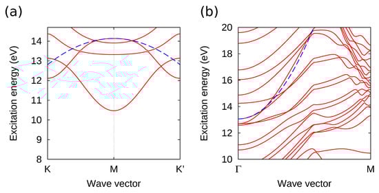 - Cudazzo, P.; Sponza, L.; Giorgetti, C.; Reining, L.; Sottile, F.; Gatti, M. Exciton Band Structure in Two-Dimensional Materials. Phys. Rev. Lett. 2016, 116, 066803. [Google Scholar] [CrossRef] [PubMed]