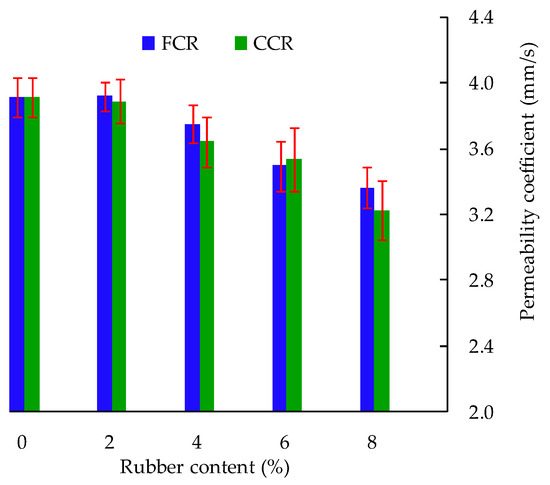 - The permeability of rubber-modified pervious concrete is lower than that of control pervious concrete. The permeability decreases slightly with the increasing rubber content. Rubber particle size has little effect on permeability.
