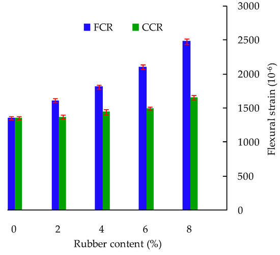 - The influence of rubber content on flexural strength is the same as on compressive strength. There is an obvious linear relationship between the compressive strength and flexural strength of rubber-modified pervious concrete. The addition of rubber enhances the flexural strain of pervious concrete. Flexural strain increases with the increasing rubber incorporation level. Fine crumb rubber significantly improves ductility without severely compromising the compressive strength, contrary to coarse crumb rubber.