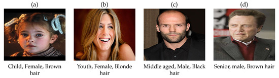 Figure 4d). From the results of the predicted mid-level attributes, we can observe that our ensemble attribute predictor can accurately predict the identification information of humans, which covers people of different ages, genders, and hair colors.