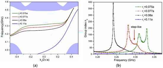 - Elshahat, S.; Khan, K.; Yadav, A.; Bibbò, L.; Ouyang, Z. Slow-light transmission with high group index and large normalized delay bandwidth product through successive defect rods on intrinsic photonic crystal waveguide. Opt. Commun. 2018, 418, 73–79. [Google Scholar] [CrossRef]