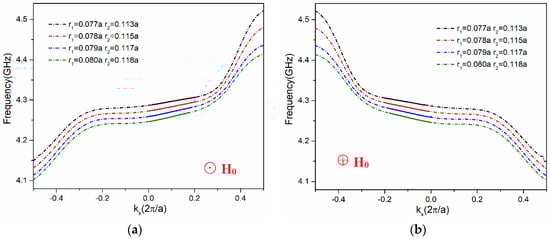 - He, C.; Sun, X.C.; Liu, X.P.; Lu, M.H.; Chen, Y.; Feng, L.; Chen, Y.F. Photonic topological insulator with broken time-reversal symmetry. Proc. Natl. Acad. Sci. USA 2016, 113, 4924–4928. [Google Scholar] [CrossRef] [PubMed]