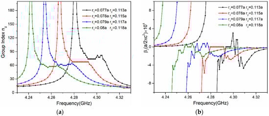 - Petrov, A.Y.; Eich, M. Zero dispersion at small group velocities in photonic crystal waveguides. Appl. Phys. Lett. 2004, 85, 4866–4868. [Google Scholar] [CrossRef]