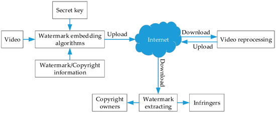 The digitization of multimedia information, along with the development of computer technology and networks, has brought great convenience to the generation, storage, and dissemination of digital products, such as images, audios, and videos. Especially, network bandwidth and computer storage capacity have been greatly improved under the influence of Moore’s law [1]. Meanwhile, with the widespread popularity of the Internet, the exchange of multimedia information has penetrated into every corner of social life. In recent years, webcast and video-on-demand (VOD) services have begun to rise and spread rapidly around the world, and the developments of the film and TV show industries are booming. As a result, the number and duration of online videos are increasing explosively, and the content is all-encompassing. Through the Internet, people can copy, process, and transmit videos of interest at will, which brings great convenience to people. However, it is followed by illegal acts such as piracy, infringement, and stealing, which not only damage the intellectual property rights of digital works’ owners, but also affect the market order of electronic publications. Additionally, pirated works may pose a great threat to the safety of users because they are of poor quality and may carry and spread computer viruses. The issue of piracy infringement is undoubtedly a huge obstacle to the healthy development of the video industry. Therefore, copyright protection for digital video is extremely urgent [2].