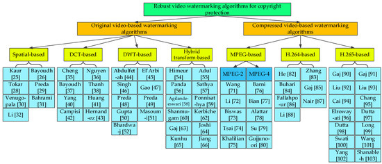 60. Shanmugam, M.; Chokkalingam, A. Performance analysis of 2 level DWT-SVD based non blind and blind video watermarking using range conversion method. Microsyst. Technol. 2018, 1–9. [Google Scholar] [CrossRef]