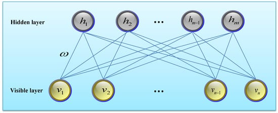RBM is an improvement over BM. It is a two-layer recursive neural network. Random binary input and random binary output are connected via symmetrical weights, as shown in Figure 2. The two-layer system consists of n dominant neurons (corresponding to the visible variable) and m recessive neurons (corresponding to the hidden variable h), where the v and h elements are binary variables whose state is 0 or 1. There is a weight value connection between the cell layer and the hidden cell layer, but there is no connection between the cells in the layer.