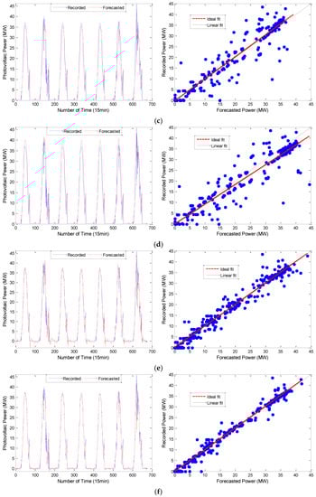 where is the actual observed value, is the predicted value, is the total average of the observed values, n is the number of samples, and is the rated installed capacity of the PV power plant. The Hill unequal coefficient is always between 0 and 1. The smaller the value, the smaller the difference between the fitted value and the true value, which means the prediction accuracy is higher. When it is equal to 0, it means a 100% fit.