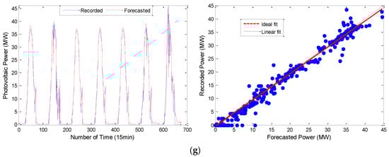 (3) Along with the rapid update of computer hardware and the development of data mining, prediction methods based on machine learning have been successfully applied in many fields. Machine learning models that have been widely applied in PV output prediction models are nonlinear regression models such as the Deep Neural Network (DNN), the Recurrent Neural Network (RNN), the Convolutional Neural Network (CNN), the Deep Belief Network (DBN) and so forth. Literature [11,12] establishes output prediction models based on the neural network, which can consider multiple input influencing factors at the same time. The only drawback is that the network structure and parameter settings will have a great impact on the performance of the models, which limits the application of neural networks. Literature [13,14] has analyzed various factors affecting PV power and established support vector machine (SVM) prediction models facing PV prediction. The results show that the SVM adopts the principle of structural risk minimization to replace the principle of empirical risk minimization of traditional neural networks; thus, it has a better generalization ability. To effectively enhance the reliability and accuracy of PV prediction results, related literature proposes the use of intelligent optimization algorithms to estimate model parameters; some examples of intelligent optimization algorithms include the gray wolf algorithm, the similar day analysis method and the particle swarm algorithm [15,16,17]. The example analysis illustrates the effectiveness of the optimization algorithm.