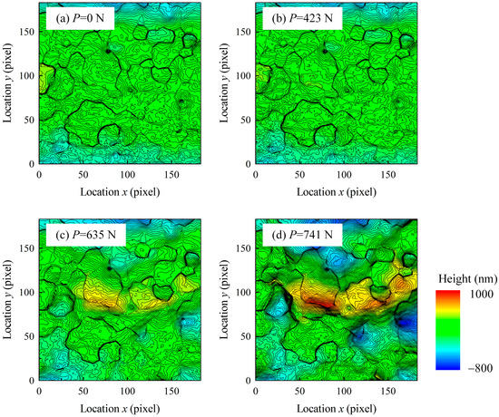 Height distribution at four load steps (1 pixel = 4.443 μm) [24].