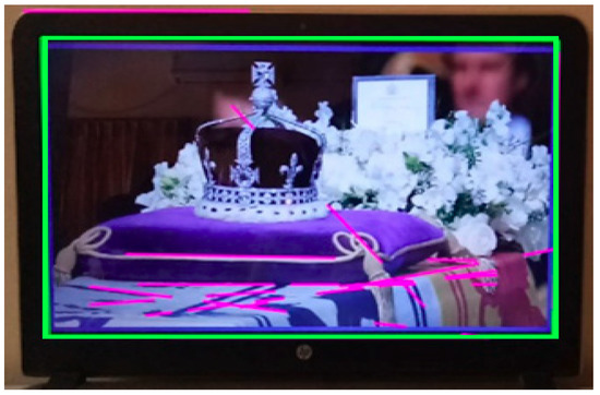 - Step 13: Lines obtained from Step 12 are used to extract the display screen from the captured image.