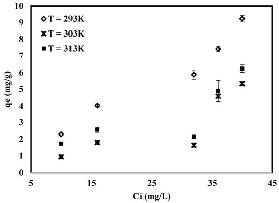 3.6. Effect of Temperature and MO Concentration on Adsorption
