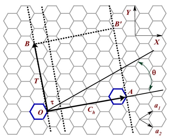 In addition, a translation vector (τ) is also necessary to delimit the unitary cell of the nanotube. It can be represented by Equations (6)–(8),