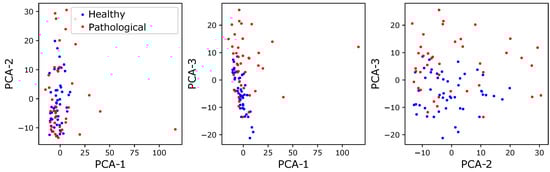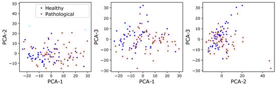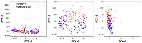 Table 1. /hlThe most important features, as selected by feature selection, including the vowel being pronounced and intonation (L—low, N—neutral, H—high, LHL—changing low-high-low). - Visualization of features: In order to get a better view of the data structure, we visualized features using the PCA method. These visualizations are shown in Figure 1, Figure 2 and Figure 3. For this visualization, we used the first three principal components from the PCA output.