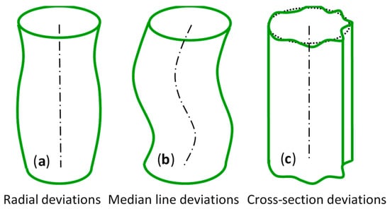 - ISO 12180-1 2011, Annex B: Geometrical Product Specifications (GPS)—Cylindricity—Part 1: Vocabulary and Parameters of Cylindrical Form—Consideration in the Assessment of Deviations from Cylindrical Form (International Organization for Standardization). Available online: https://www.iso.org/obp/ui/#iso:std:iso:12180:-1:ed-1:v1:en (accessed on 16 October 2018).