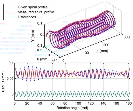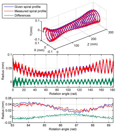 - The way to fill a segment of data of Probes 2–4 at the tail end of measurement becomes a crucial factor to determine measurement accuracy. In light of the authors’ experience, if straightness errors of actual spiral profile are significant in the outputs of the probes, it may be a good solution that a segment of data of Probes 2–4 at the tail end of measurement are assigned by the data collected by Probe 1 at the head end of measurement.