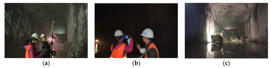 Figure 4 depicts the field test of the ventilation environment in the caverns. It can be seen that the air quality is satisfactory after 20 min of axial-flow gallery ventilation. The excavation face is clearly visible in the range of 200 m, and the visibility in the cavern is more than 300 m when mucking.