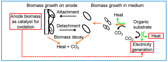 - Schröder, U. Anodic electron transfer mechanisms in microbial fuel cells and their energy efficiency. Phys. Chem. Chem. Phys. 2007, 9, 2619–2629. [Google Scholar] [CrossRef] [PubMed]