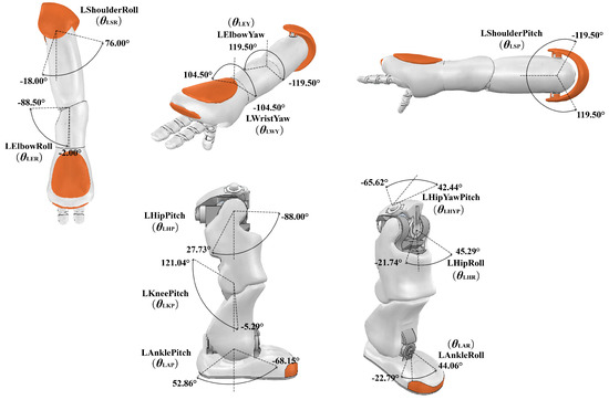Upper- and lower-limb joints and joint angles of the NAO robot.