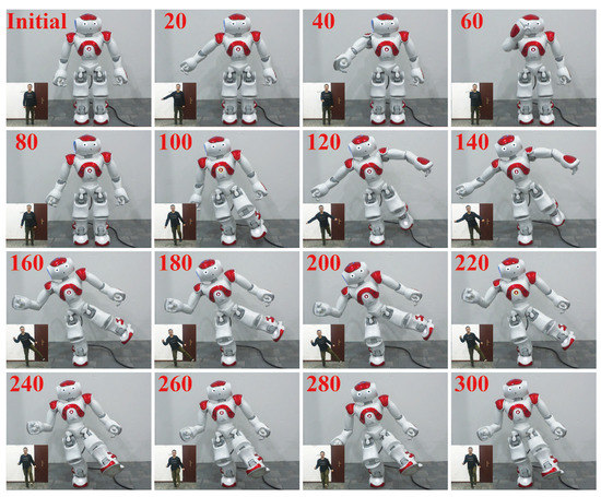 - Kondo, Y.; Yamamoto, S.; Takahashi, Y. Real-time Posture Imitation of Biped Humanoid Robot based on Particle Filter with Simple Joint Control for Standing Stabilization. In Proceedings of the Joint 8th International Conference on Soft Computing and Intelligent Systems (SCIS) and 17th International Symposium on Advanced Intelligent Systems, Toyama, Japan, 5–8 December 2016; pp. 130–135. [Google Scholar]