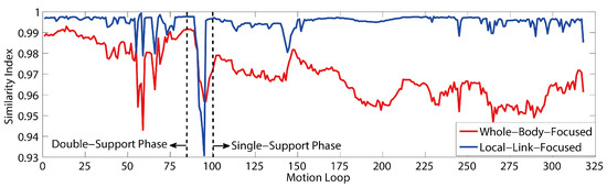 - Two quantitative vector-based similarity evaluation methods are proposed, namely, the WBF method and the LLF method, which focus on the whole-body posture and the local-link posture, respectively. They can provide novel metrics of imitation similarity that consider both whole-body and local-link features.