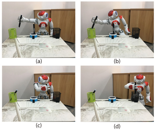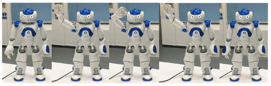 This process is shown in Figure 21. The reproduced hello motion performed by NAO is depicted in Figure 22, which demonstrates the key features of a hello motion effectively.