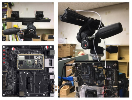 The stereo camera was then connected to the Jetson TX2. To obtain synchronized stereo images from the Jetson TX2, an embedded board connected with an I-PEX cable, launched by Leopard imaging in CA, USA in 2017, should be used. The length of the I-PEX cable [19] was relatively short, about 30 cm, so the Jetson TX2 should be mounted as close as possible to the stereo camera.