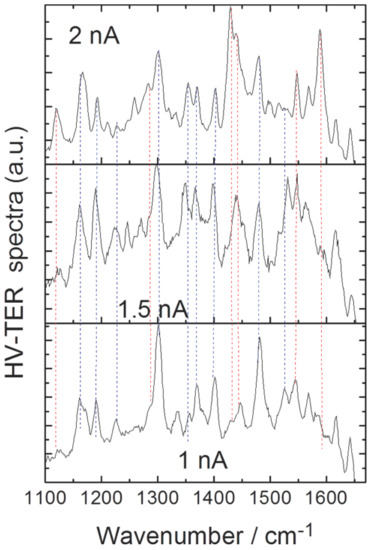 HV-TERS spectra of 2,2’DA-DMAB produced from 2,4-DNBT with different tunneling currents [62].