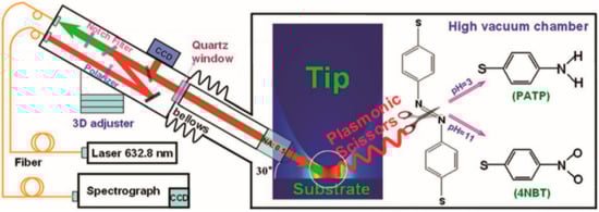 Plasmon-driven surface catalytic reactions can be detected and analyzed in detail using HV-TERS. Moreover, TERS is able to control the dissociation of target molecules by monitoring the pH value of the environment, which is significant for the environment and investigations of dynamic processes [84,85,86].