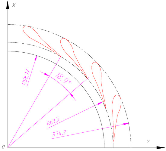 It should be noted that the total-to-static efficiency is initially estimated based on Figure 2 after the loading coefficient and the flow coefficient are set, but the initial total-to-static efficiency cannot influence the final result, but only the iteration steps. Therefore, the final result is only decided by the loading coefficient, the flow coefficient, and the rotor rotational speed.