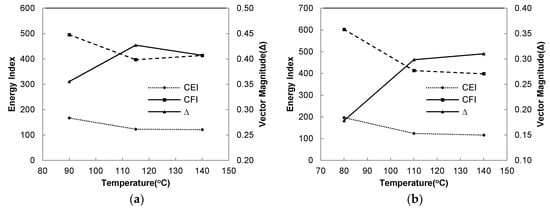 - The aggregate orientation and the energy index were highly dependent on the compaction temperature. At high viscosity, the aggregates were not sufficiently able to slide and be moved for rearrangement; thus, the mixture needs more energy for compaction. There is an optimum compaction temperature at which a preferred orientation exists to provide a low-energy index. Excessive compaction temperature is unnecessary to obtain a better rearrangement of aggregates. Conversely, an excessive compaction temperature was found to be responsible for increasing the interaction of aggregates and causing a reduction in the amount of asphalt for lubrication.