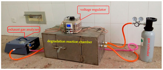 - The coating was put in a dry and ventilated place for more than 24 h to ensure that the coating was completely dry. After that, the slab was put into the degradation reaction chamber. The exhaust gas analyzer was turned on and a certain concentration of exhaust gas was injected into the degradation reaction chamber.