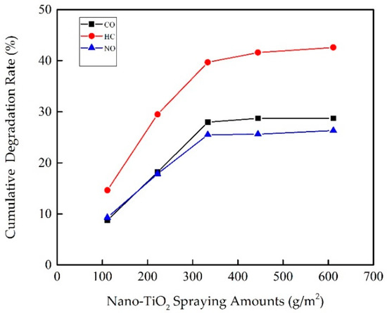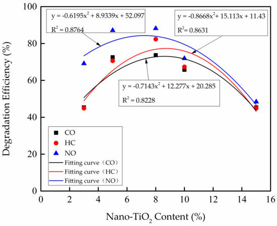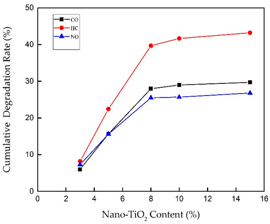 4.1. Effects of the Nano-TiO2 Content on Exhaust Gas Degradation