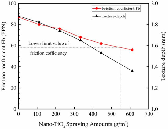 - With the increase of the amount of nano-TiO2, the standard viscosity of photocatalytic coatings decreased, indicating that the photocatalytic coatings gradually became viscous. The main reason was that nano-TiO2 had a good adsorption capacity to asphalt because of its small particle size and large specific surface area. Although the coatings became viscous with increasing nano-TiO2 content, all of the photocatalytic coatings met the technical requirements of the standard viscosity of PC-2 (sprinkling cationic slow-setting emulsified asphalt) in the Chinese Technical Specifications for Construction of Highway Asphalt Pavements (JTG F40-2004) [25].